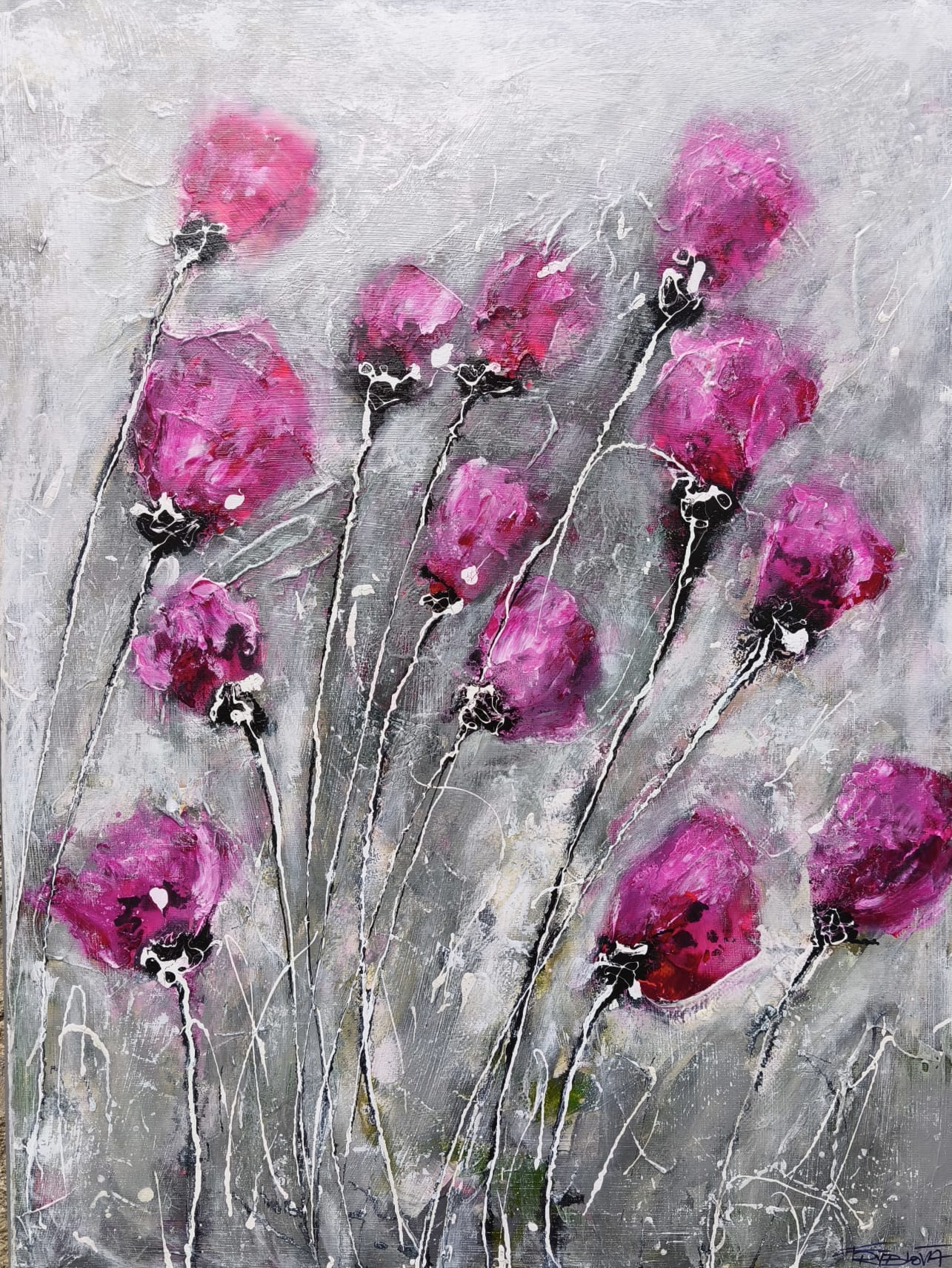 KVĚTINOVÉ MÁMENÍ - kombinovaná technika olej a akryl na plátně, rozměr 100x150 cm
